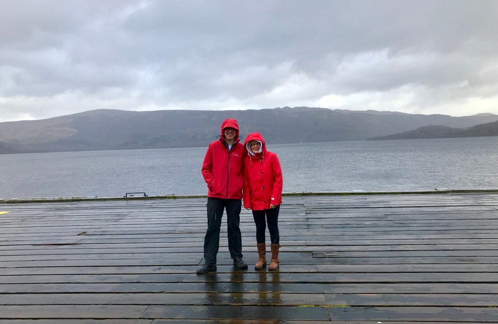 A wet day, we decided to go for drive. Just to see the views. First to Luss, on the shores of Loch Lomond. Practicing manoeuvring in car parks. Remembered to buy two tickets, one for each space Herdy occupied. Visited the pier (wet and windy) and the Coach House coffee shop (dry and tartan).