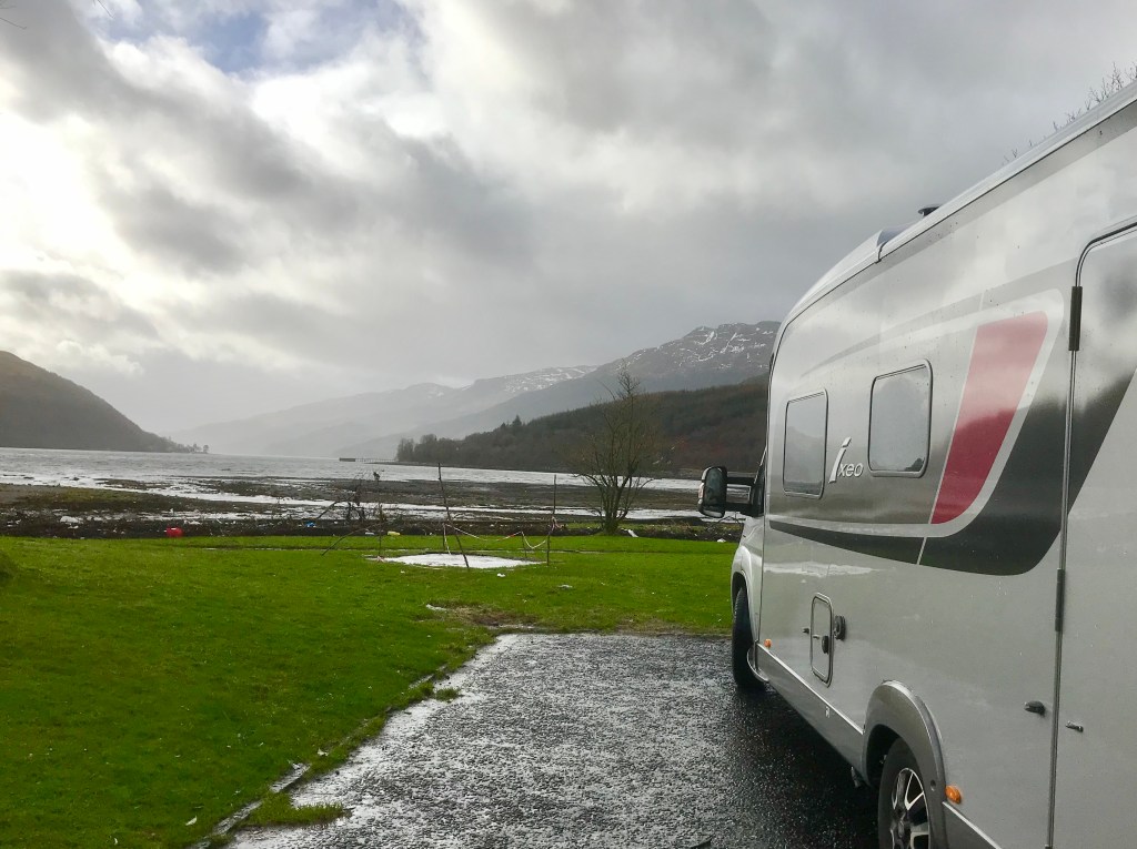 Roads got narrower and so did the valley, before we turned left at Tarbet and headed to Arrochar at the head of Loch Long. The car park here was strewn with seaweed and other debris blown in on Storm Dennis. Loch Long is a sea loch a long finger of salt water that stops at Arrochar in the shadow of Ben Arthur (The Cobbler).