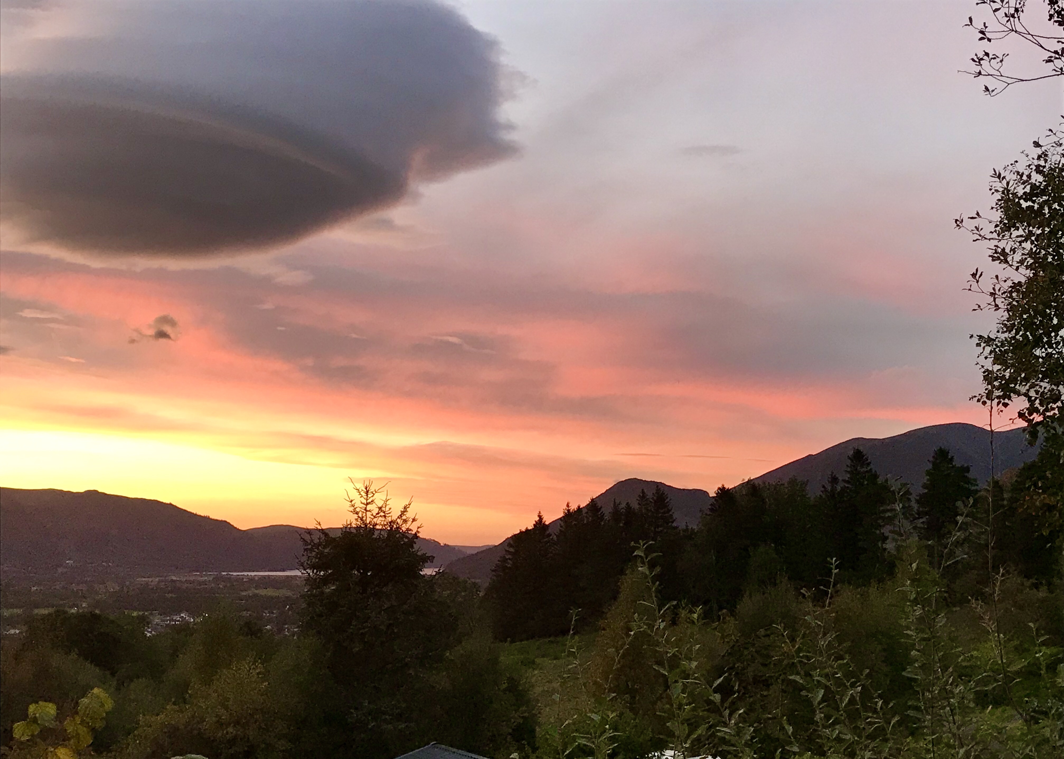 We arrived at Castlerigg Hall site in Keswick on Friday evening just as dusk was settling. The setting sun made for some stunning views from Herdy’s pitch We set up the illuminated box too with the site name on it (an idea inspired by Maurice_the motorhome). We set about cooking and planning our activities for the weekend.