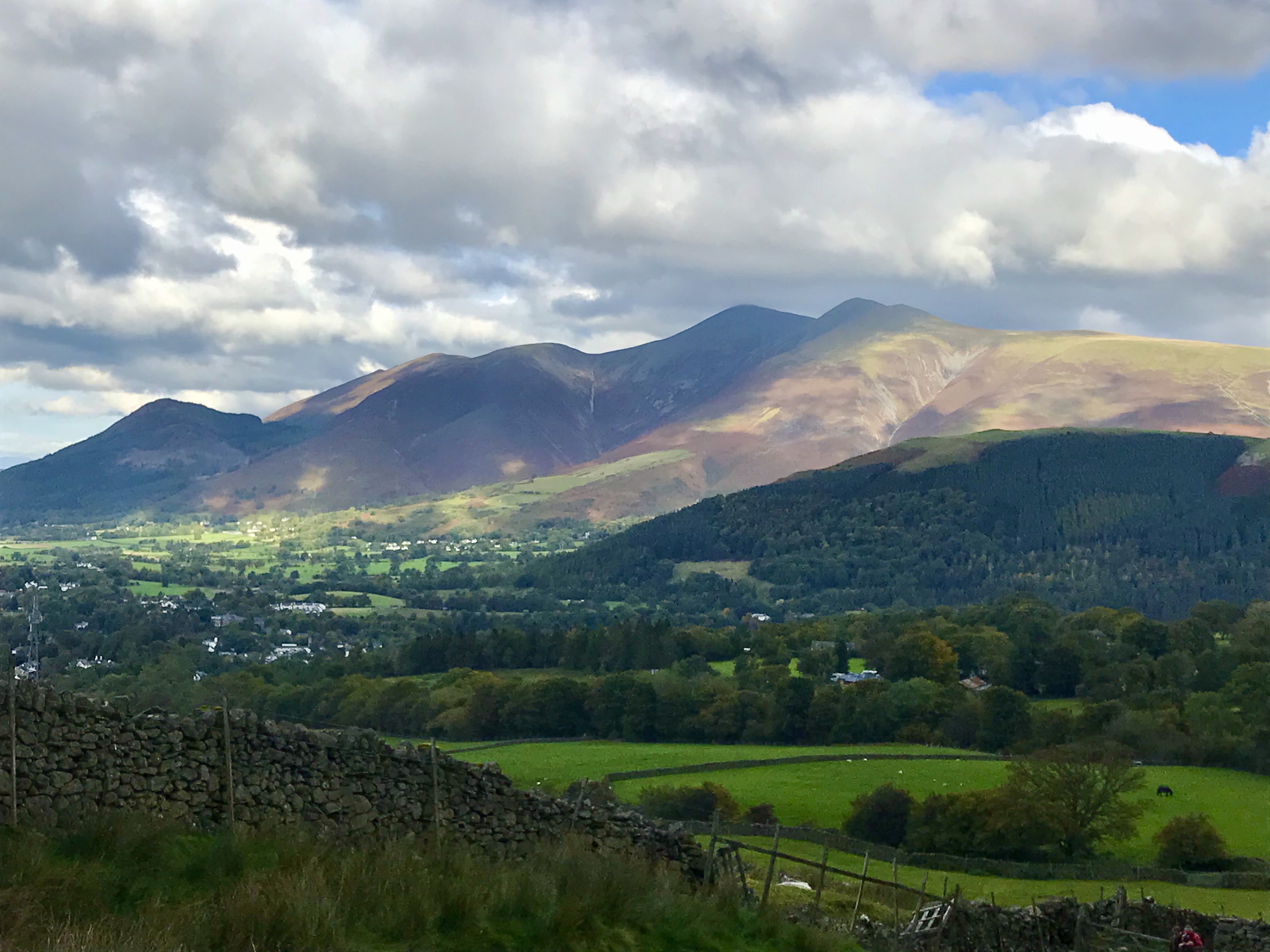 From the summit of Walla Crag we followed the ridge across and up to Bleaberry Fell, which given the rain on Saturday, was a tad wet and the path was a bit like a stream in places!! The views from our second summit were fabulous and we were happy to pose in front of my favourite mountain, Blencathra.