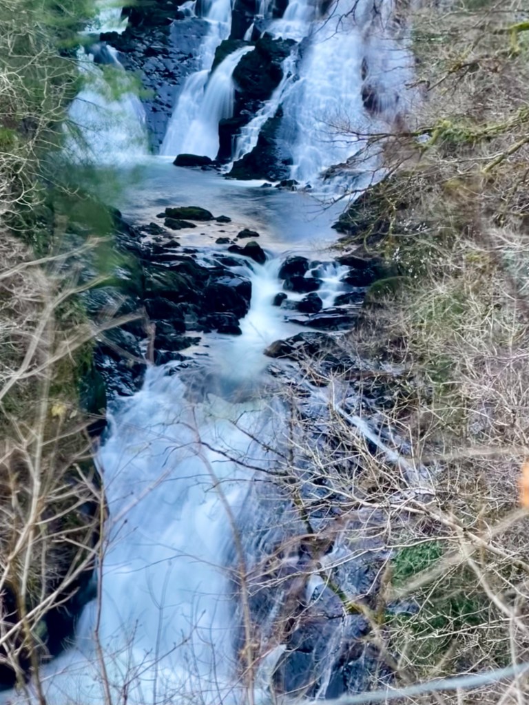 Wonderful walk through the Gwydyr Forest to Betws-y-coed and then back to Llanrwst via the Swallow Falls. Paths almost empty and met a very confident robin at the bench overlooking the falls. Even managed to get back before the rain started. 22km and 650m.
