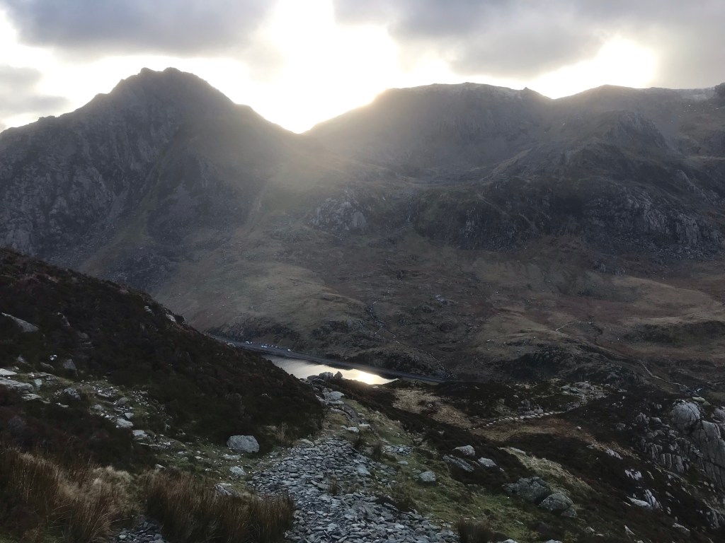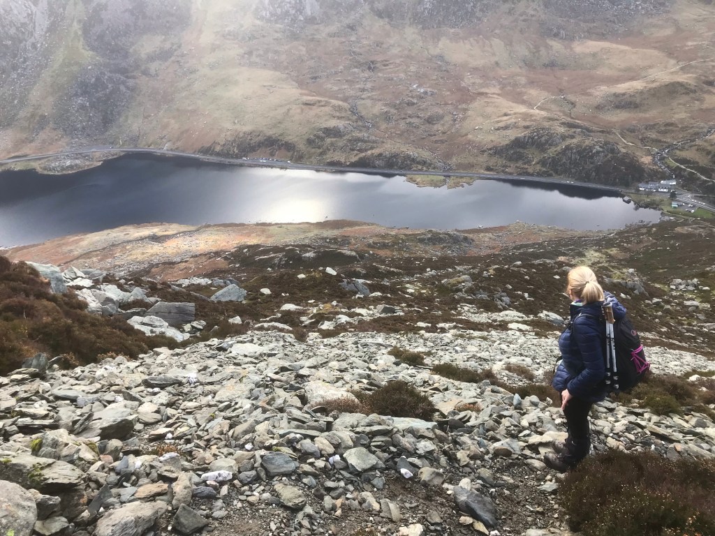 This time we made it to the top. The direct route from Ogwen is a challenge. Straight up and with long stretches of scree and some scrambling. But the views of Tryfan and the Glyders are amazing. We even had an RAF fly past when half way up.